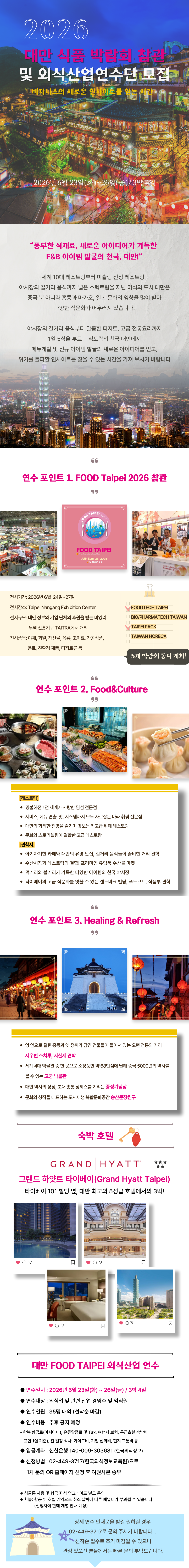 2026 대만 식품 박람회 참관 및 외식 산업연수단 모집
