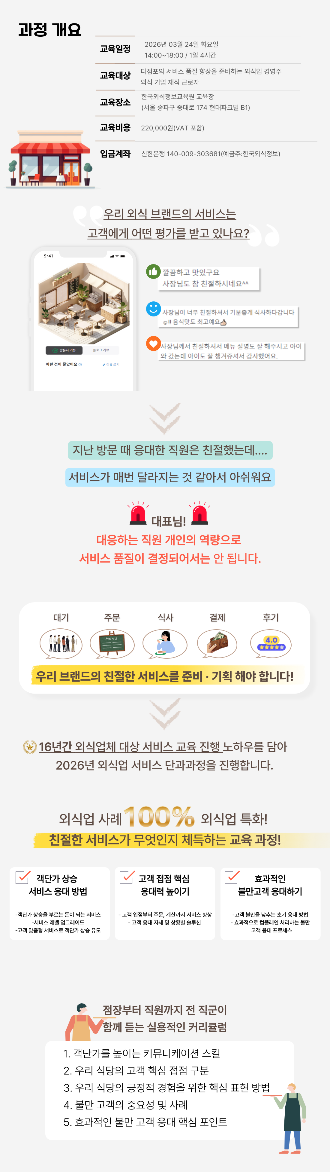 ■ 교육대상 : 외식업 서비스 향상을 위한 서비스 실무자 및 담당자, 대표